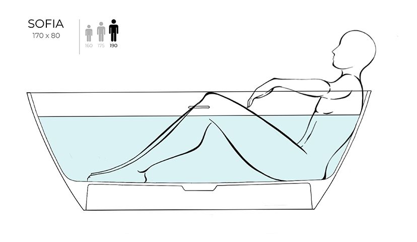 Ванна SOFIA хорошо смотрится как у стены, так и в центре комнаты — особенно в сочетании с удобной раковиной современного силуэта из этой же серии. Преимущества