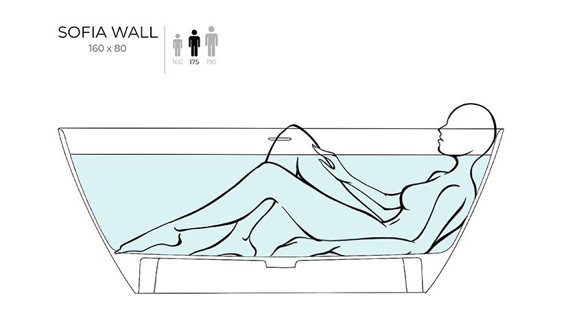 Пристенная ванна SOFIA WALL — практичное решение, когда не хочется терять ни сантиметра ценной площади ванной комнаты. Широкий бортик позволит расположить на нём необходимые туалетные принадлежности, а его ровное примыкание к стене упростит принятие душа.