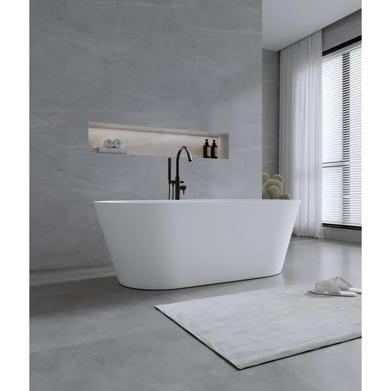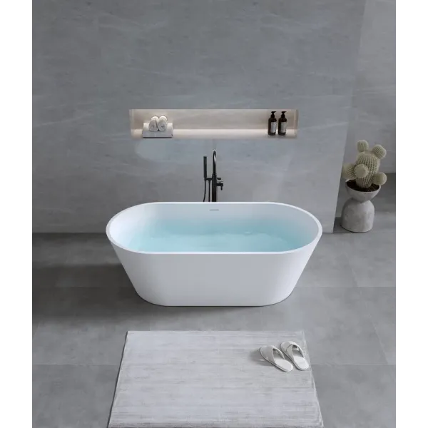 Поверхность ванны приятная на ощупь и не холодная благодаря низкому уровню теплопроводности, что делает процесс эксплуатации очень приятным.