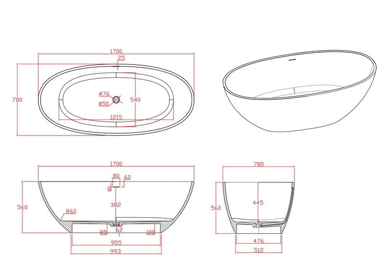 Поверхность ванны приятная на ощупь и не холодная благодаря низкому уровню теплопроводности, что делает процесс эксплуатации очень приятным.
