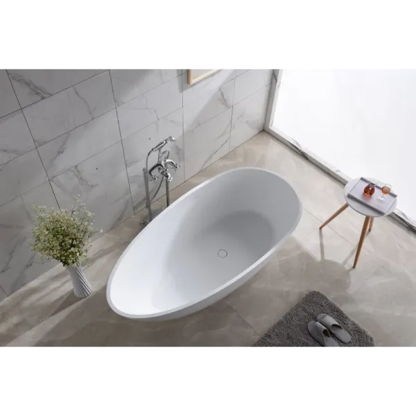 Поверхность ванны приятная на ощупь и не холодная благодаря низкому уровню теплопроводности, что делает процесс эксплуатации очень приятным.
