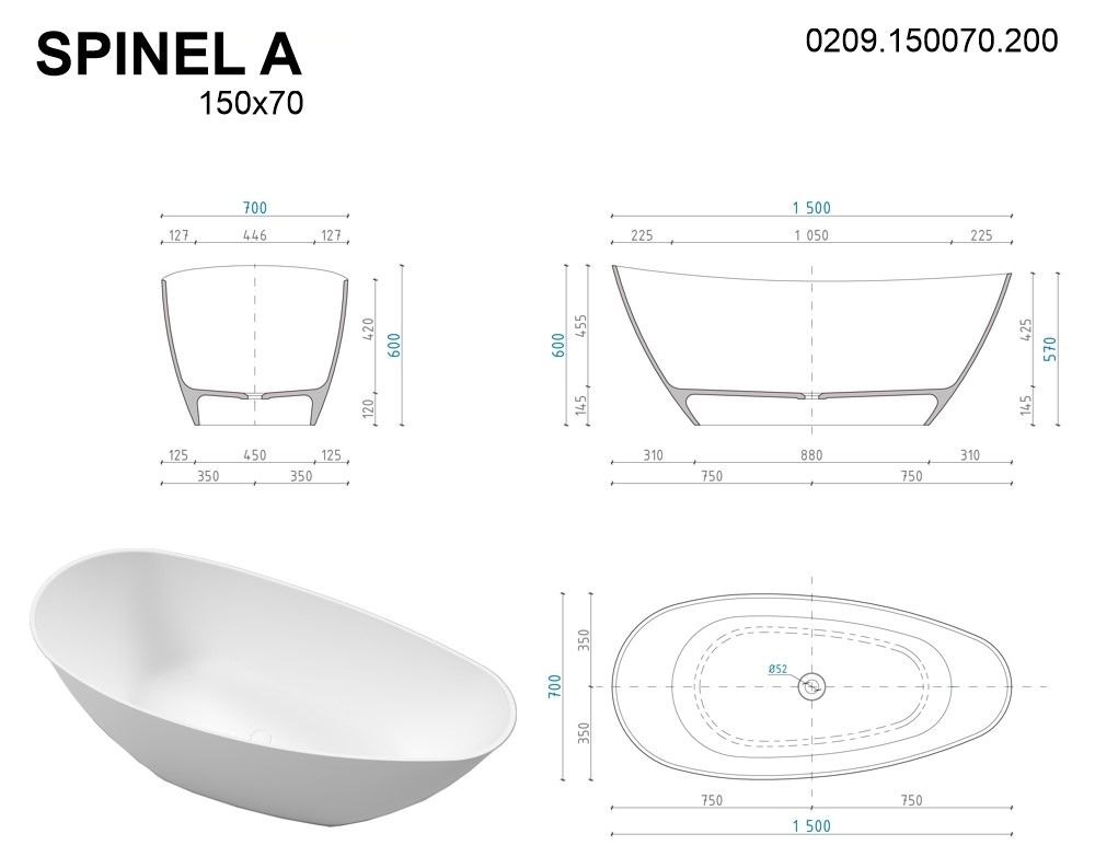 Для создания ванны SPINEL A используются материалы премиум класса, качество которых соответствует высочайшим стандартам.