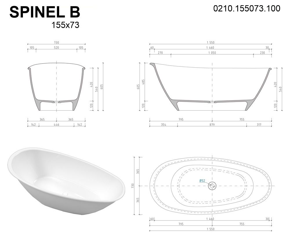 Для создания ванны SPINEL B используются материалы премиум класса, качество которых соответствует высочайшим стандартам.
