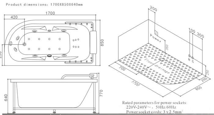 Ванна SSWW W0827 170x85 с гидромассажем купить