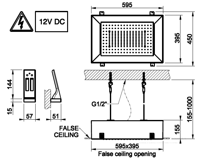 Дополнительно приобретаются: Блок питания 12В (арт. RIR5402) и накладная декоративная панель (арт. 57006) в желаемом цвете. Требуется источник питания на 12В.