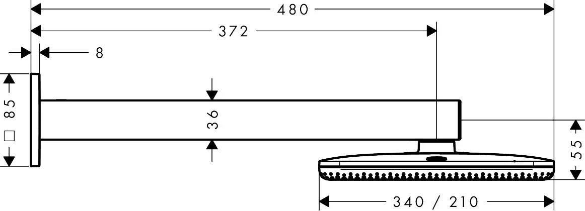 Размер верхнего душа, см:34