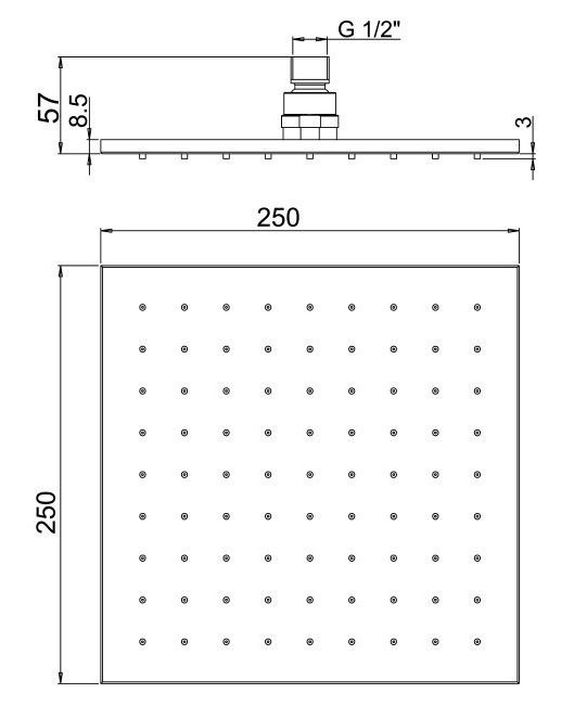 Верхний душ Paini 50YO759QQ25 25см чёрный матовый