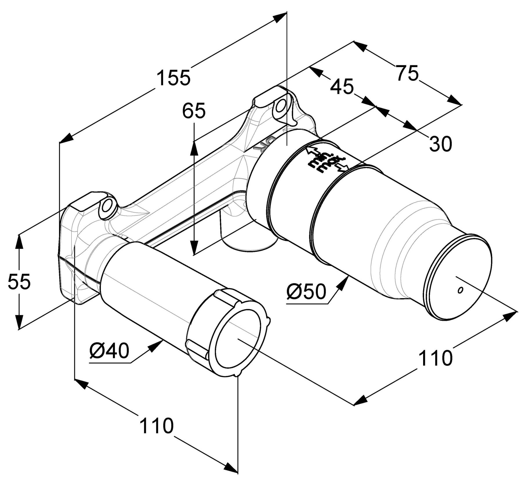 • глубина монтажа 45-75 мм