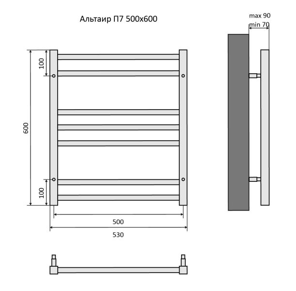 Полотенцесушитель водяной Aquatek (Акватек) Альтаир П7 500х600 мм, черный муар, подключение нижнее/диагональное, сверхпрочная пищевая нержавеющая сталь AISI 304L, гарантия 10 летХарактеристики:30х30/20х20,без фитинговКомплектация:полотенцесушитель;