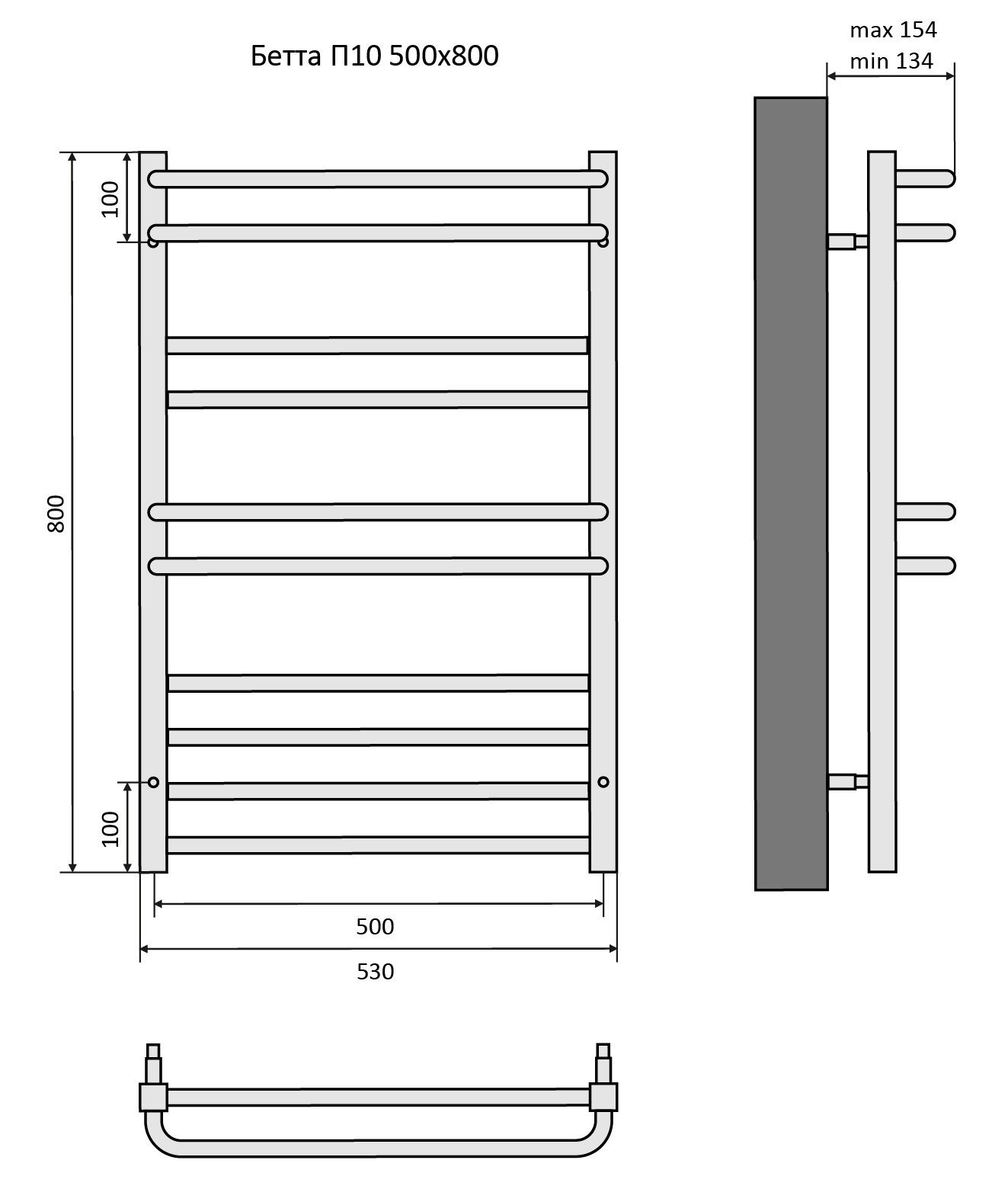 Полотенцесушитель водяной Aquatek (Акватек) Бетта П10 500х800 мм, подключение нижнее/диагональное, сверхпрочная пищевая нержавеющая сталь AISI 304L, гарантия 10 летХарактеристики: 30х30/18,без фитинговКомплектация:полотенцесушитель;