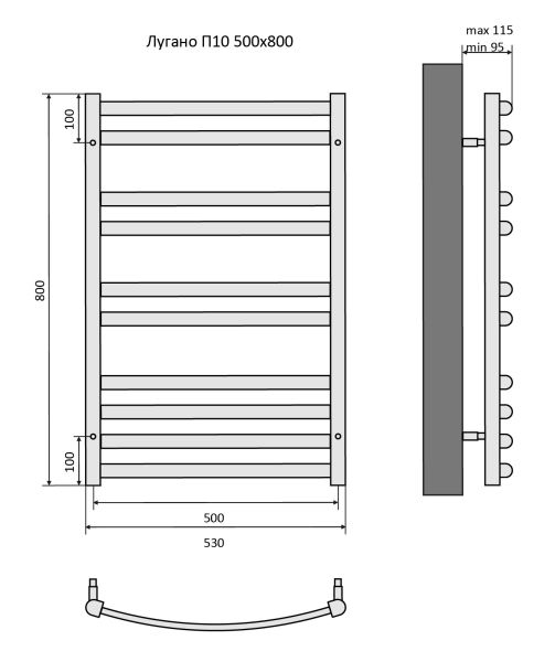 Полотенцесушитель водяной Aquatek (Акватек) Лугано П10 500х800 мм, черный муар, подключение нижнее/диагональное, сверхпрочная пищевая нержавеющая сталь AISI 304L, гарантия 10 летХарактеристики:Dх29,без фитинговКомплектация:полотенцесушитель;