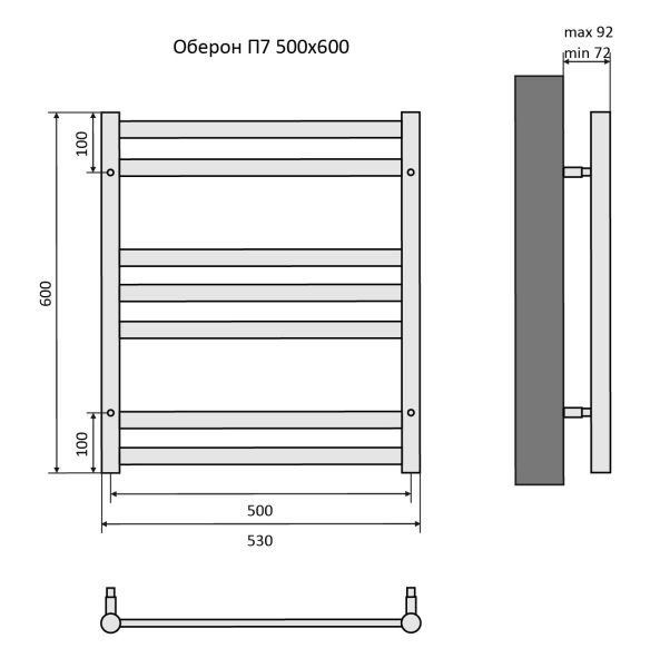 Полотенцесушитель водяной Aquatek (Акватек) Оберон П7 500х600 мм, черный муар, подключение нижнее/диагональное, сверхпрочная пищевая нержавеющая сталь AISI 304L, гарантия 10 летХарактеристики:32х29,без фитинговКомплектация:полотенцесушитель;