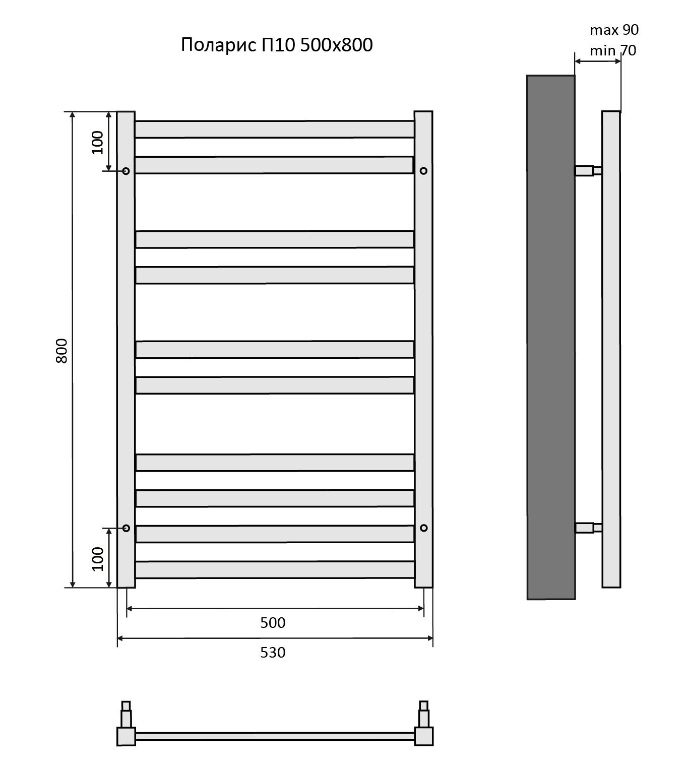 Полотенцесушитель водяной Aquatek (Акватек) П10 500х800 мм, черный муар, подключение нижнее/диагональное, сверхпрочная пищевая нержавеющая сталь AISI 304L, гарантия 10 летХарактеристики:Стойка квадрат 30х30,ребра овал 29,без фитинговКомплектация:полотенцесушитель;