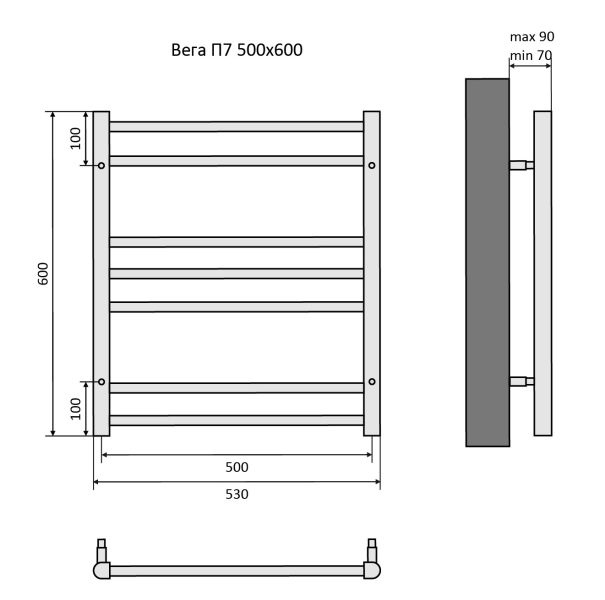 Полотенцесушитель водяной Aquatek (Акватек) Вега П7 500х600 мм, подключение нижнее/диагональное, сверхпрочная пищевая нержавеющая сталь AISI 304L, гарантия 10 летХарактеристики:Стойка D-обр., ребра Ф 18, без фитинговКомплектация:полотенцесушитель;