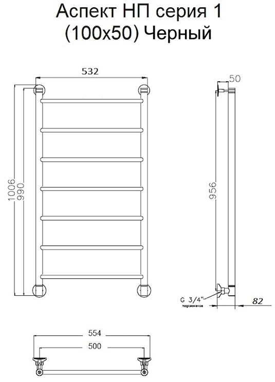 Водяной полотенцесушитель Тругор Аспект НП 1 100x50см чёрный Аспект1/нп10050черный