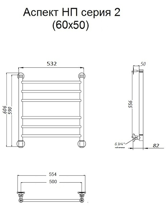Водяной полотенцесушитель Тругор Аспект НП 2 60x50см хром Аспект2/нп6050
