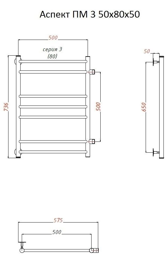 Водяной полотенцесушитель Тругор Аспект ПМ 3 50x80x50см хром Аспект3/ПМ508050 купить