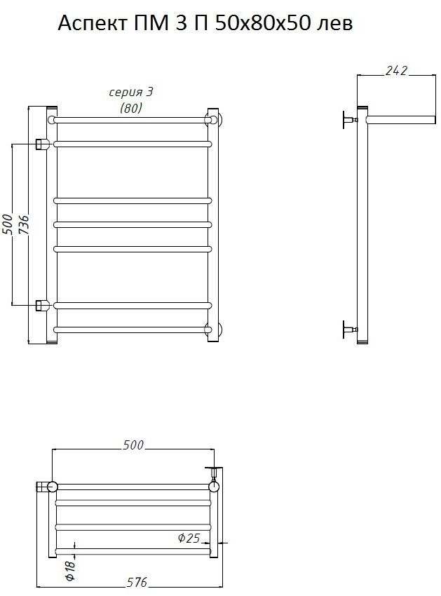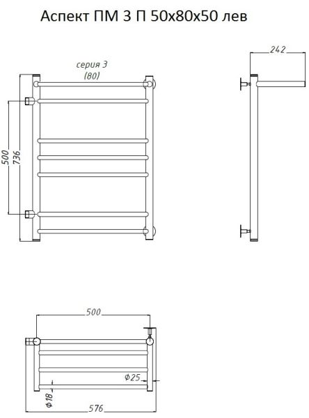Водяной полотенцесушитель Тругор Аспект ПМ 3 П 50x80x50см с полкой левый хром Аспект3/ПМ508050Плев