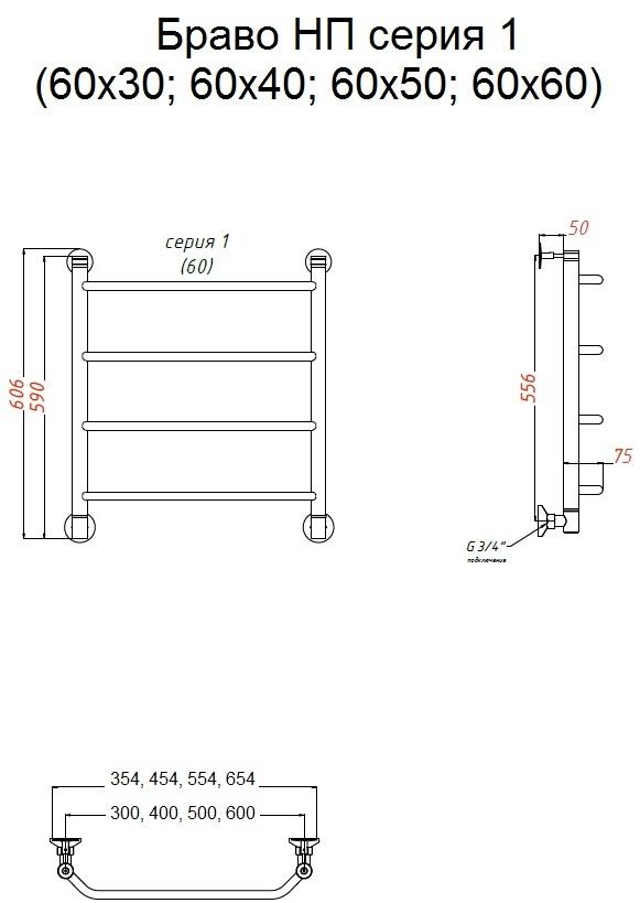 Водяной полотенцесушитель Тругор Браво НП 1 60x40см хром Браво1/нп6040