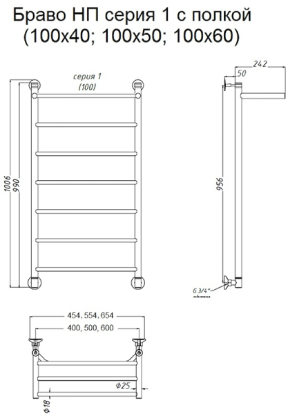 Водяной полотенцесушитель Тругор Браво НП 1 П с полкой 100x50см хром Браво1/нп10050П купить