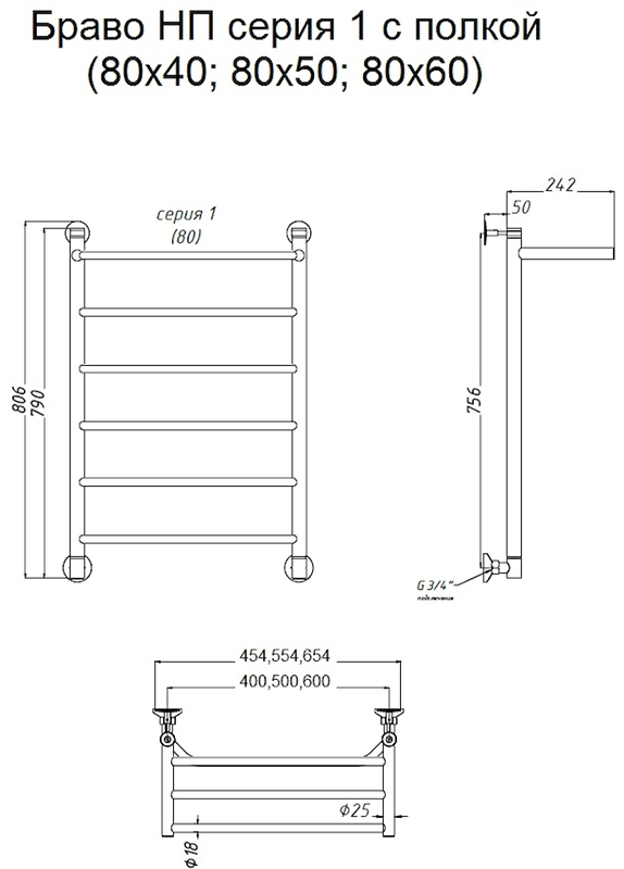Водяной полотенцесушитель Тругор Браво НП 1 П с полкой 80x50см хром Браво1/нп8050П