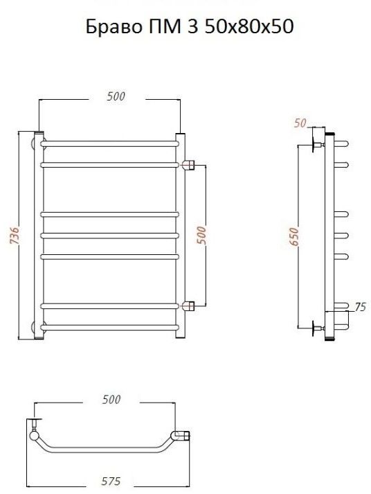 Водяной полотенцесушитель Тругор Браво ПМ 3 50x80x50см хром Браво3/ПМ508050