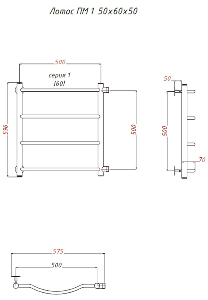 Водяной полотенцесушитель Тругор Лотос ПМ 1 50x60x50см хром Лотос1/ПМ506050