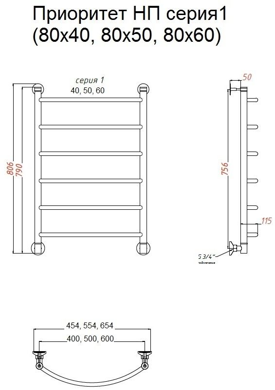 Водяной полотенцесушитель Тругор Приоритет НП 1 80x50см хром Приоритет1/НП8050