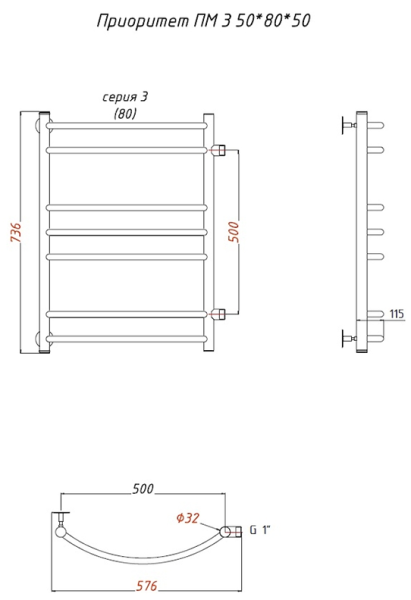 Водяной полотенцесушитель Тругор Приоритет ПМ 3 50x80x50см хром Приоритет3/ПМ508050