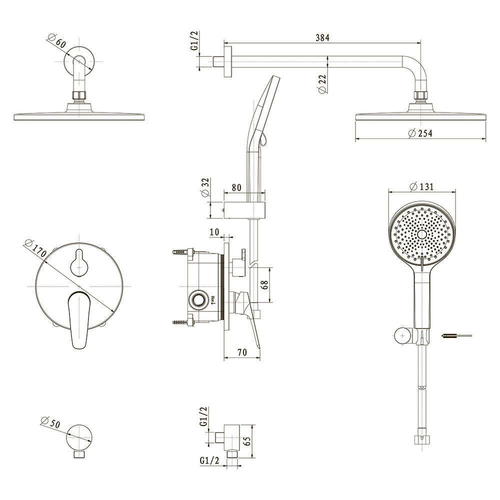 Встраиваемая душевая система TEORA, Золото брашинг
