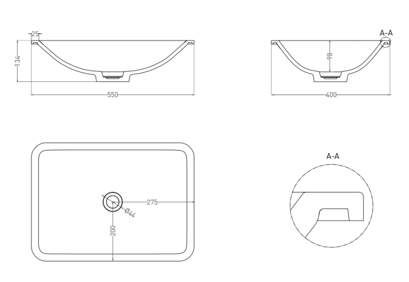 Встраиваемая раковина Salini Marea 06 S-Stone 1802206MRF 55см RAL полностью