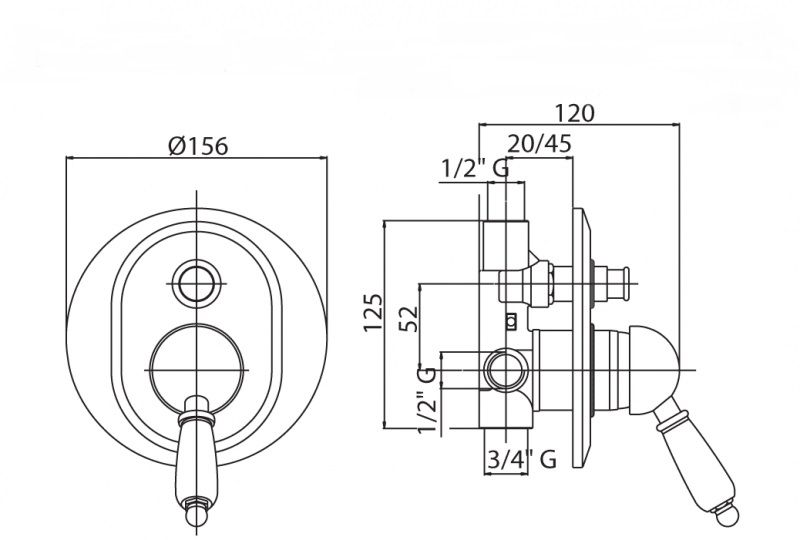 Встраиваемый однорычажный смеситель для душа с переключателем, хром Cezares ELITE-VDIM-01-Bi