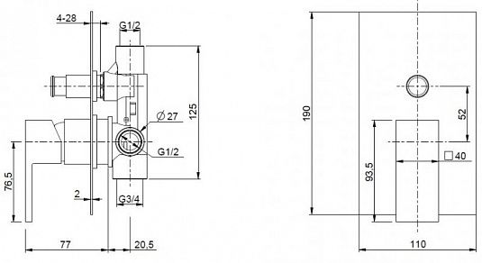 Встраиваемый однорычажный смеситель для душа с переключателем на 2 выхода, бронза Cezares UNIKA-VDIM-02 купить