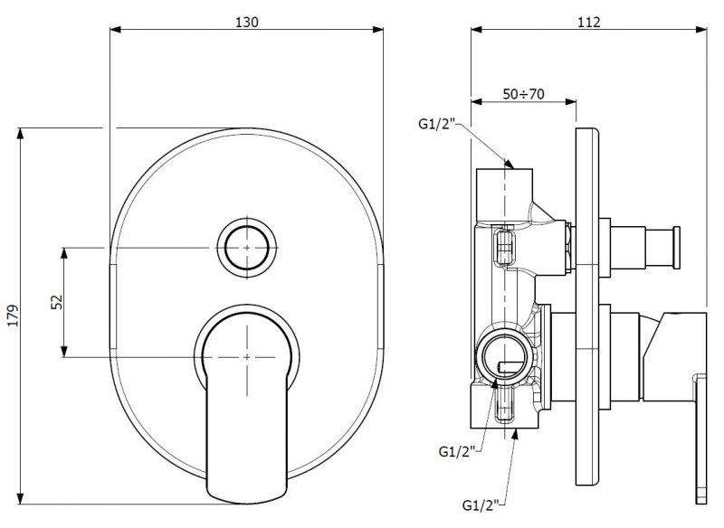 Тип подводки: внутренний (скрытый) монтаж 1/2"