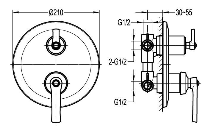 Оснащение: скрытая монтажная часть, дивертор