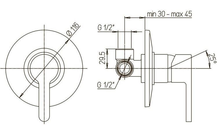 • Встраиваемый монтаж скрывает все соединения и оставляет на виду только рычаг управления, что добавляет в интерьер дизайнерский акцент, экономя пространство.