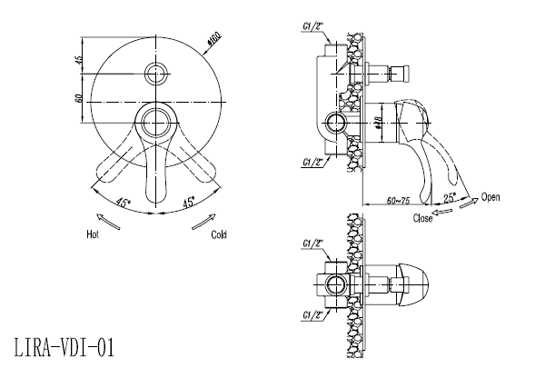 Оснащение: скрытая монтажная часть, дивертор, девиатор