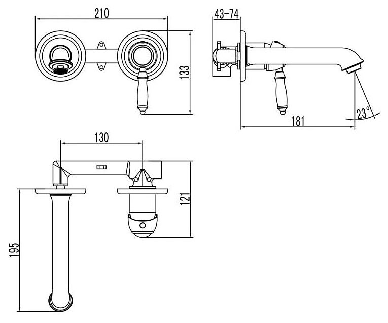 • Угол поворота аэратора: 23 °