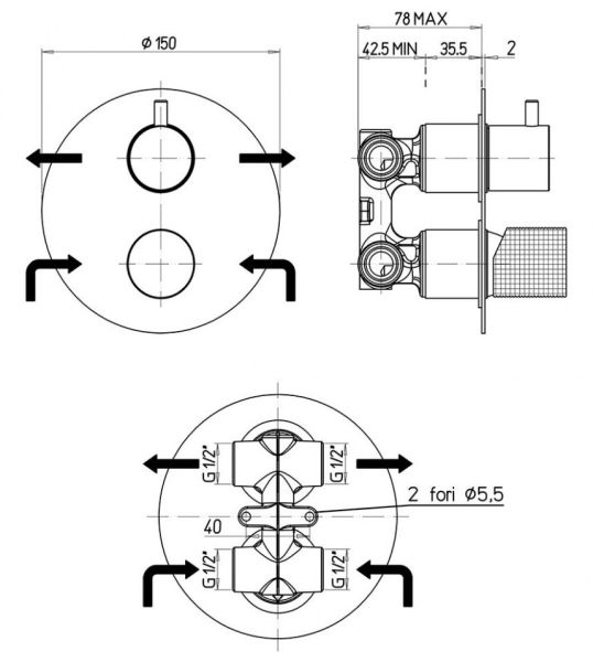 • Встраиваемый монтаж скрывает все соединения и оставляет на виду только рычаги управления, экономя пространство.