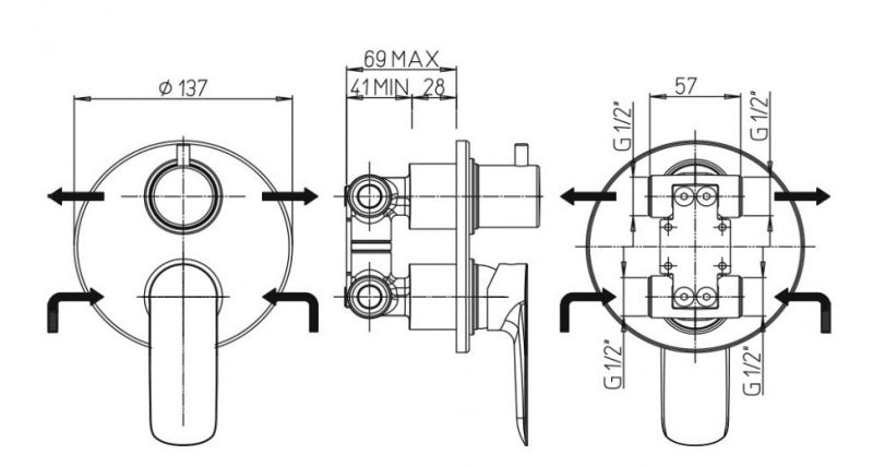 • Встраиваемый монтаж скрывает все соединения и оставляет на виду только рычаг управления, что добавляет в интерьер дизайнерский акцент, экономя пространство.