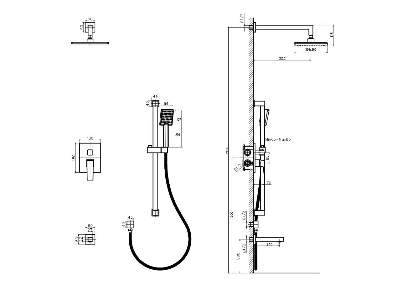 Тип:душевая система со смесителем