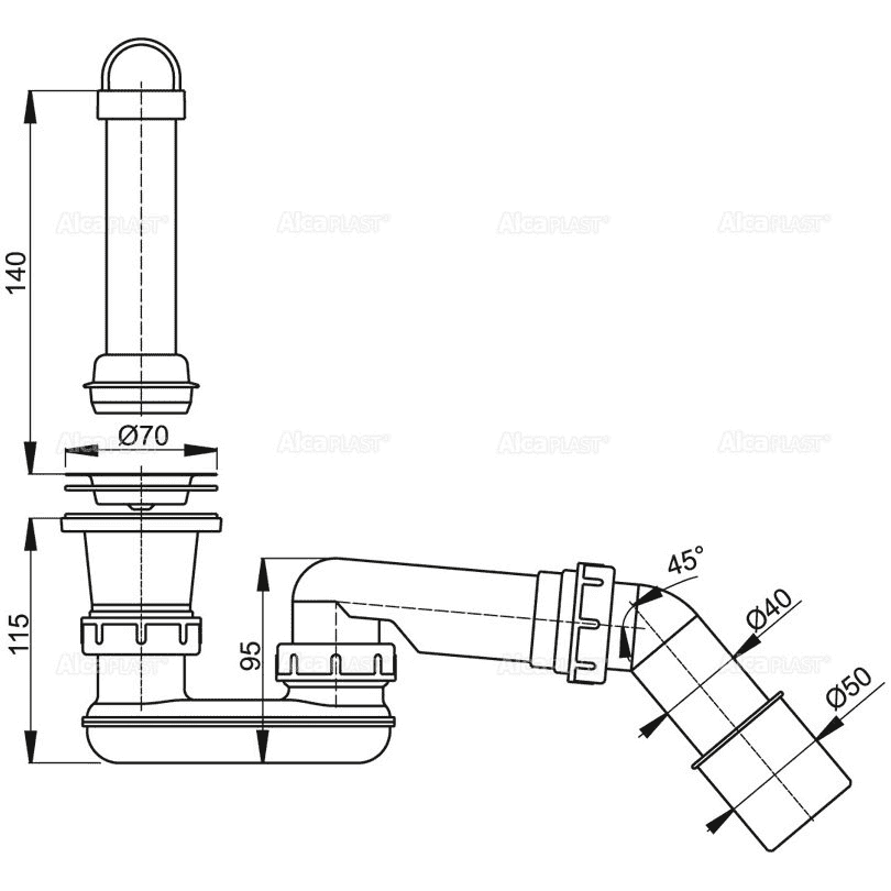 Выпускной комплект для душевого поддона AlcaPlast с гидрозатвором и коленом A462-50