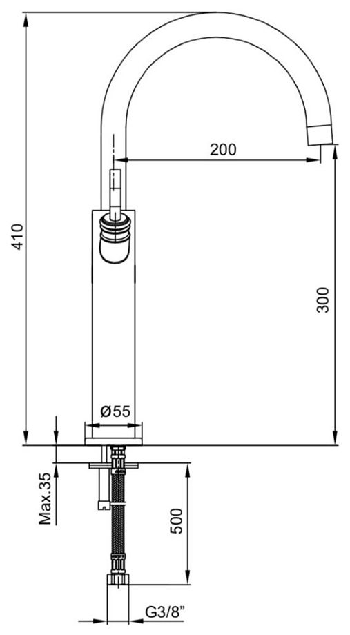 • Высота смесителя: