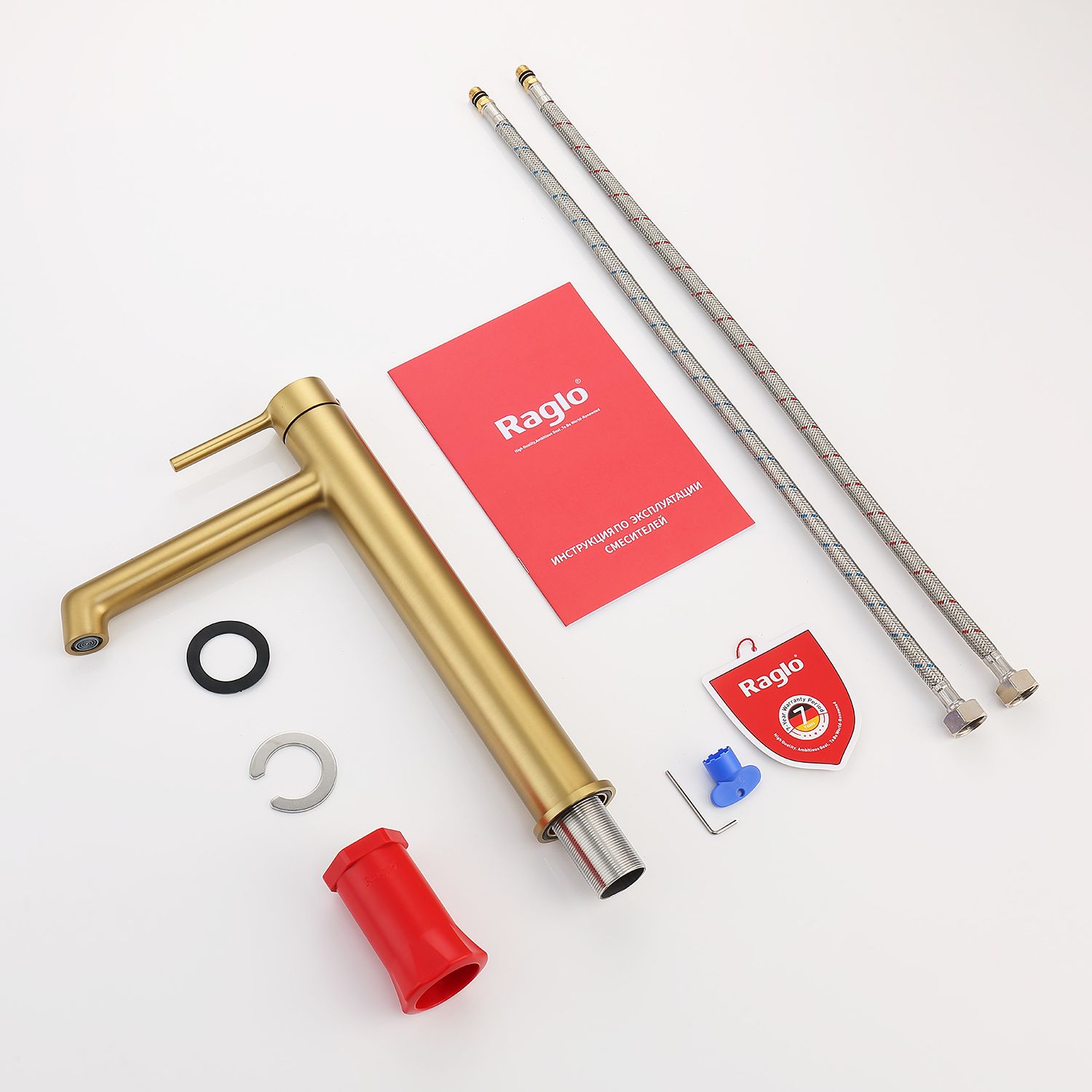 Смеситель для раковины RAGLО имеет повышенную прочность корпуса. Соответствует требованиям международного стандарта. Одна рукоять для регулировки воды. Аэратор гарантирует одинаковый поток воды, сеточка рассеивает напор, вода смягчается. Смеситель устанавливается на гайке, нижняя часть смесителя вставляется в отверстие для монтажа и затягивается гайкой для фиксации. Данный смеситель для умывальника имеет надежный стационарный излив, не меняющий своего положении. Смеситель прекрасно смешивает потоки воды, а помимо этого обладает невысоким показателем шумов. Быстрый монтаж. Крепление на усиленной гайке. Подводка длиной 55 см имеет латунные гайки. Гарантия на смеситель 7 лет и 2 года на покрытие.