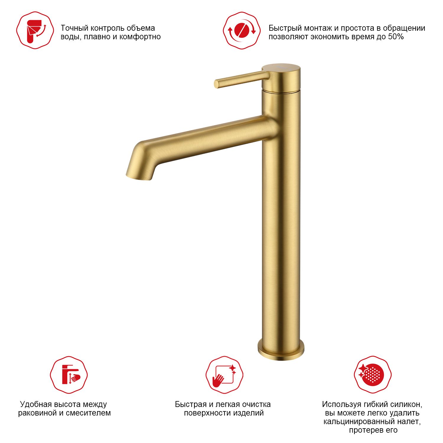 Высокий смеситель для раковины Raglo R20.15.03 золотой сатин купить