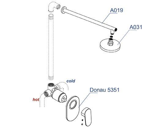 Wasserkraft А12031 Встраиваемый комплект для душа с верхней душевой насадкой