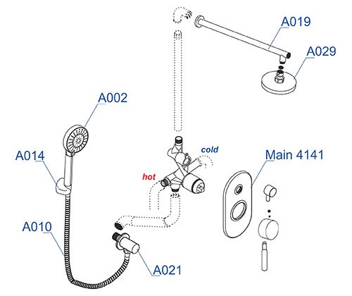 Wasserkraft A14129 Встраиваемый комплект для душа с верхней душевой насадкой и лейкой