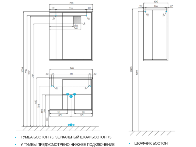 Зеркальный шкаф Акватон Бостон 75см белый/дуб эврика 1A240302BN010
