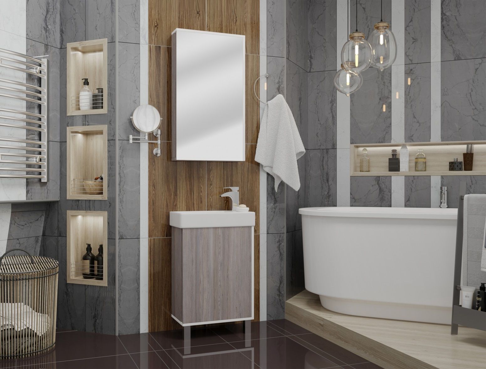 Зеркальный шкаф Акватон Эмма 46см белый/дуб наварра 1A221802EAD80