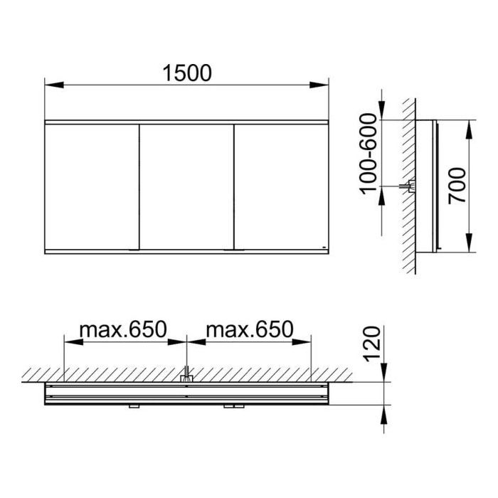 Зеркальный шкаф, алюминий серебристый анодированный,1500 x 700 x 120 mm,